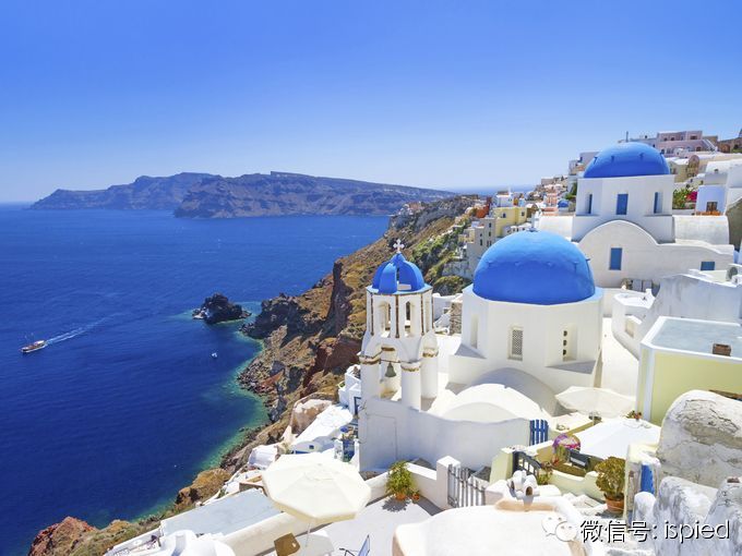 希腊的圣托里尼教堂,蓝白世界的天堂,格外优美典雅。