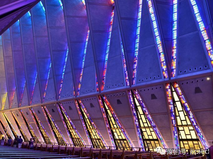 美国空军学院学员教堂高150英尺,17个漂亮的尖塔直抵云霄,