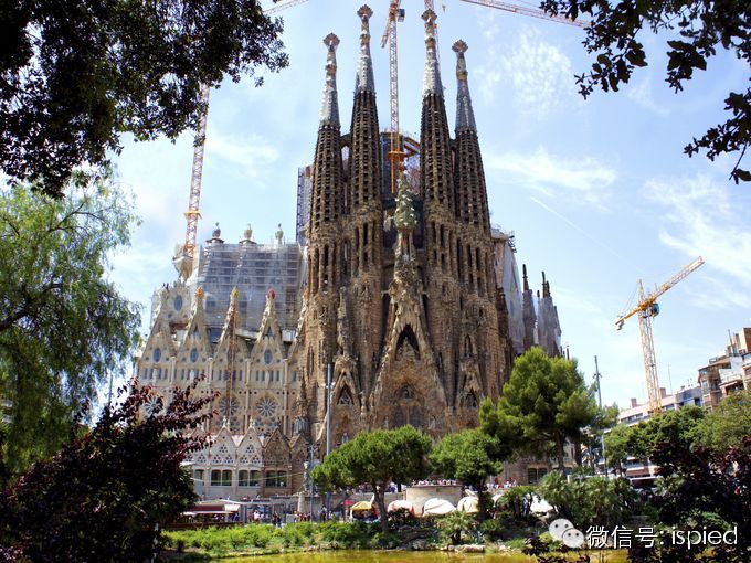 由建筑大师安东尼·高第设计的西班牙巴塞罗那的圣家堂教堂,