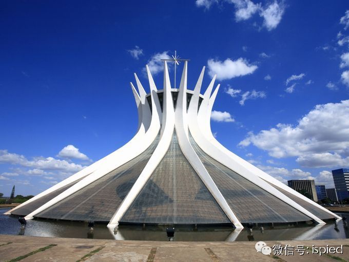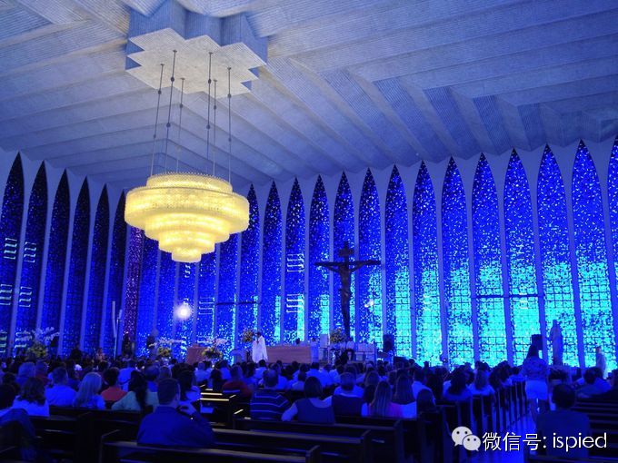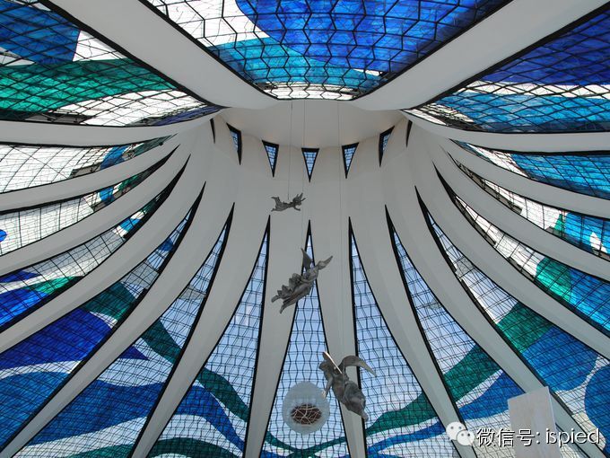 巴西利亚大教堂内部由16根抛物线状的支柱支撑起教堂的穹顶,