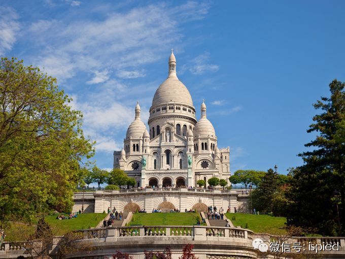 蒙马特-圣心大教堂位于法国巴黎,其洁白的圆顶呈典型的