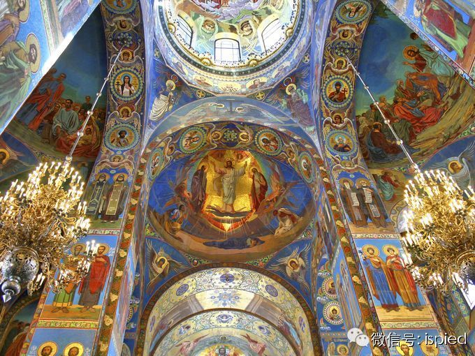 圣彼得堡喋血大教堂内部色彩绚丽,其80,000多平方英尺的